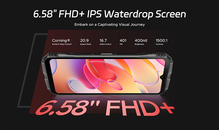 Doogee S Cyber (S Series) là một thiết bị mạnh mẽ và hiện đại với màn hình 6.60 inch, tỷ lệ 20:9 và độ phân giải 2408 x 1080 pixel. Màn hình IPS với độ phân giải 400 PPI cho chất lượng hiển thị sắc nét và màu sắc sống động, phù hợp cho việc xem phim, chơi game và sử dụng hàng ngày. Mặt kính sáng bóng của thiết bị giúp tăng thêm vẻ sang trọng và hiện đại.