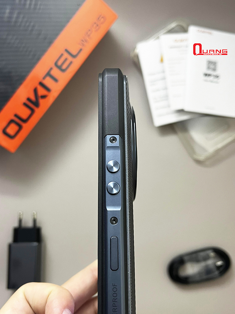 Điểm nổi bật của Oukitel WP35 5G là thân máy chỉ dày 15mm, một con số rất ấn tượng đối với một chiếc điện thoại pin khủng mỏng nhất. Thiết kế này không chỉ mang lại cảm giác cầm nắm thoải mái mà còn giúp bạn dễ dàng mang theo bên mình trong mọi hoàn cảnh. Bên cạnh đó, thiết kế rugged còn giúp điện thoại chịu được va đập và môi trường khắc nghiệt, rất phù hợp cho những ai thường xuyên di chuyển hoặc làm việc trong điều kiện khắc nghiệt.